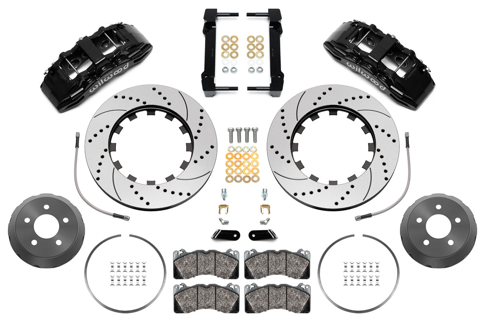SX6R calipers were designed for the specific purpose of providing high capacity braking with large diameter rotors for extreme duty and race vehicles. It is the largest dual purpose caliper Wilwood has produced, providing big brake performance for show and dual purpose street and track vehicles. Offering additional enhanced braking with wheel and tire upgrades. Kits are fully compatible with OE master cylinder output and ABS function. Directional 72 staggered vane 14.00” to 15.00”rotors provide maximum cooling for sustained high heat durability.