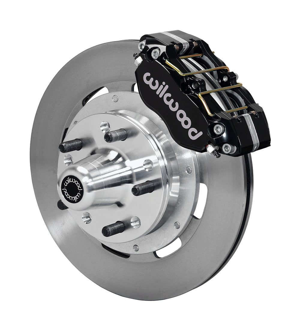 DP-DB Big Brake Front Hub Kits provide the added advantage of larger diameter brake rotors for traditional non-ABS spindles on American muscle cars and vintage rods. Dynapro Dustboot calipers, 12.19” diameter rotors, and high performance Wilwood brake pads generate big brake stopping power. These kits were developed for applications or locations that require or prefer a dust-sealed piston. Dust-boot sealed aluminum pistons provide added protection against road or track born dirt and debris on low to intermediate temperature range applications that may also operate in harsh environments. A full range of options for caliper finish and rotor design provide custom builders with the ability to personalize the style and performance requirements of the mildest to the wildest machines.