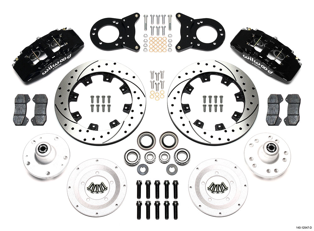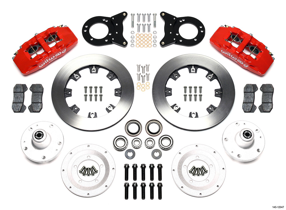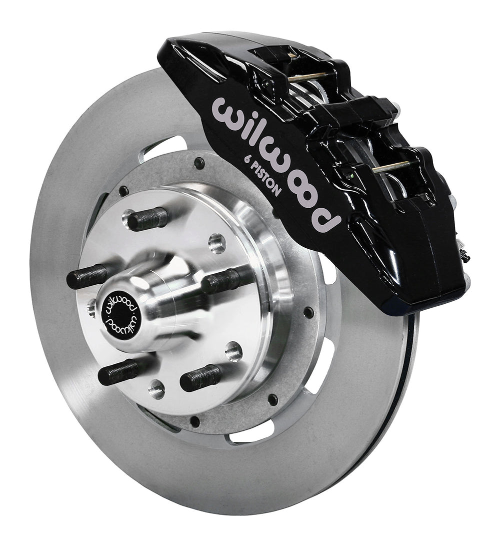 DynaPro 6 forged billet calipers are combined with 12.19” diameter rotors for this group of traditional non-ABS spindles on American muscle cars and vintage rods. The enhanced brake capacity and pad performance of the six piston calipers provide an intermediate-level alternative to the bigger six piston kits. These kits compliment wheel, tire, and suspension upgrades on all types of custom show and high-performance street / strip machines. A full range of caliper finishes and rotor designs enable the builder to personalize the style and optimize the brake performance for each individual application.