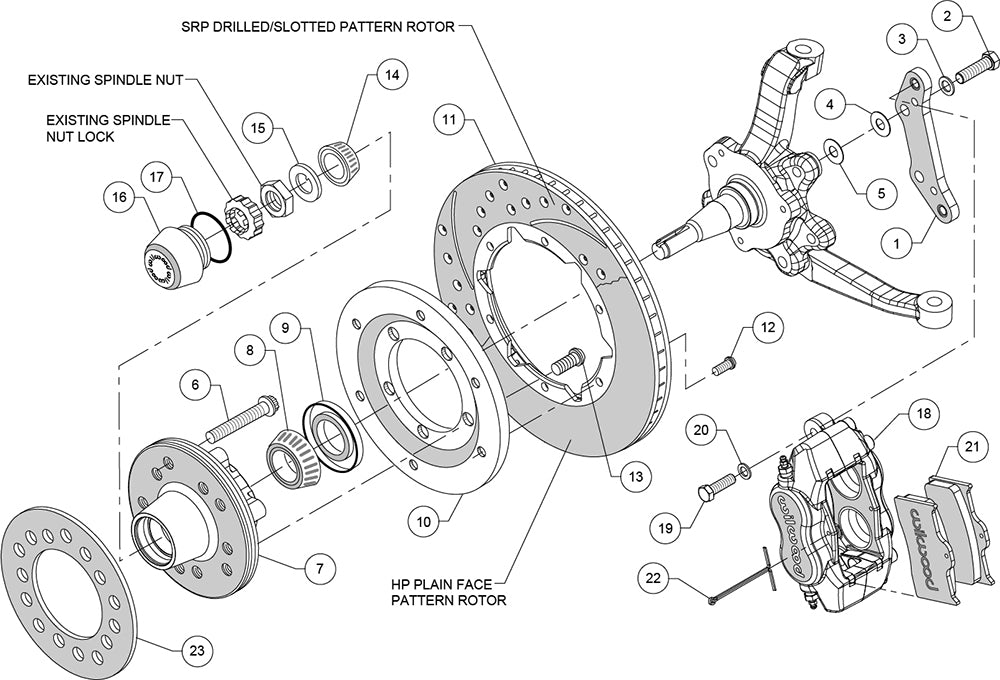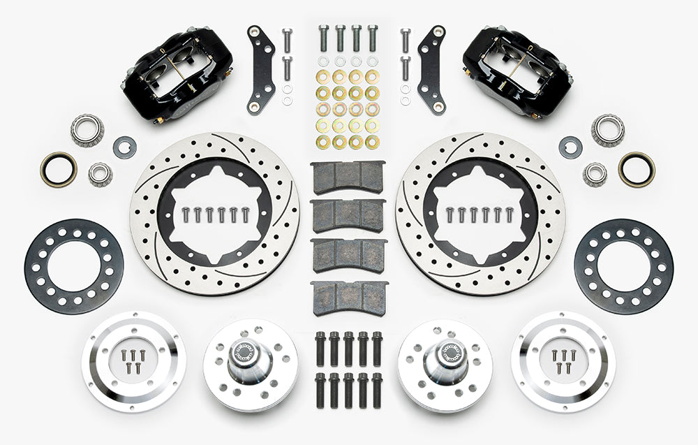 FDL Pro-Series Front Hub Kits offer complete disc brake upgrade solutions for traditional non-ABS spindle applications on American muscle cars, vintage rods, and heavy weight drag cars. Based on the venerable forged billet Dynalite caliper, these versatile kits are easily optioned to suit the braking requirements and style preferences for a daily driver, serious competition, or the most discriminating show enthusiast. Most kits require no modifications for installation, and provide plenty of clearance inside popular 15” wheels. FDL Pro-Series kits can be used with either manual or power boost master cylinders.