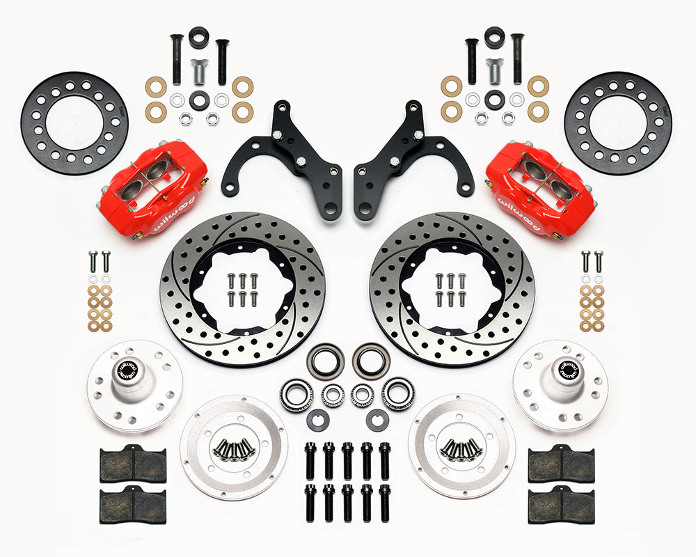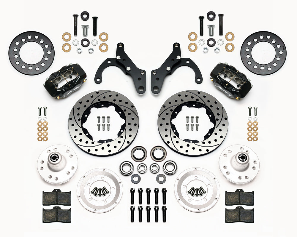 FDL Pro-Series Front Hub Kits offer complete disc brake upgrade solutions for traditional non-ABS spindle applications on American muscle cars, vintage rods, and heavy weight drag cars. Based on the venerable forged billet Dynalite caliper, these versatile kits are easily optioned to suit the braking requirements and style preferences for a daily driver, serious competition, or the most discriminating show enthusiast. Most kits require no modifications for installation, and provide plenty of clearance inside popular 15” wheels. FDL Pro-Series kits can be used with either manual or power boost master cylinders.