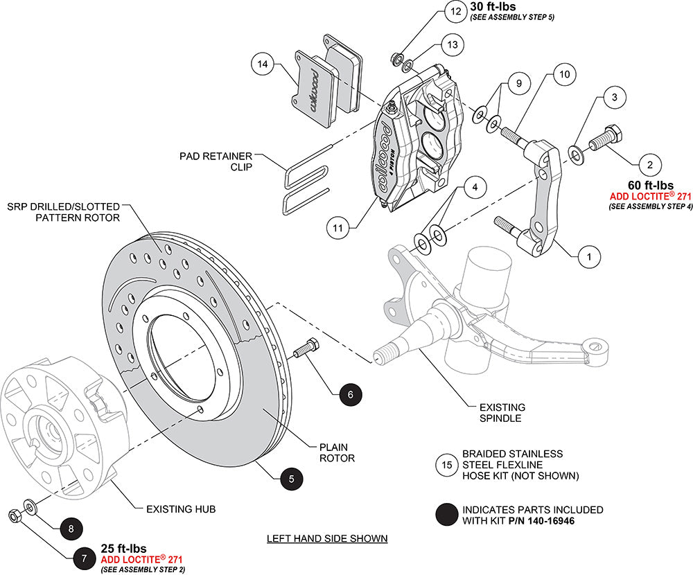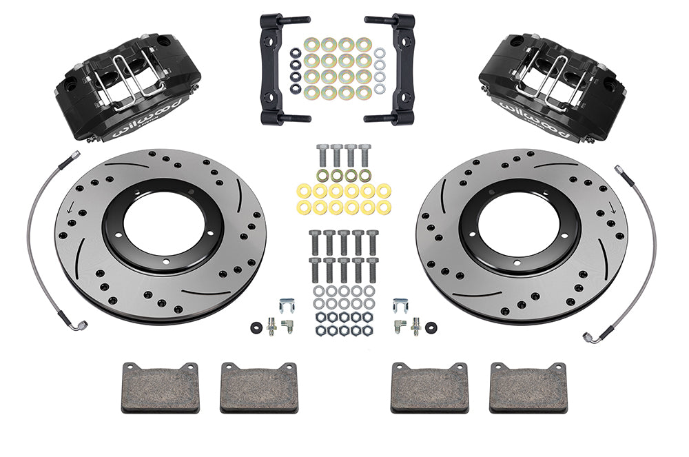 Powerlite Front Brake Kits allow easy upgrade to 4 piston Powerlite calipers, 1 piece rotor and hat assemblies formulated from proprietary iron compounds and BP-10 performance pads. using the stock rotor and spindle mounting. Kits come complete with hardware and stainless steel flexlines.