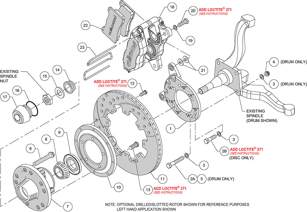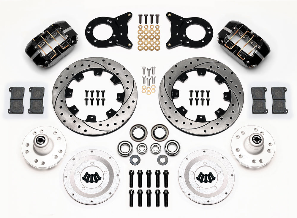 DP-DB Big Brake Front Hub Kits provide the added advantage of larger diameter brake rotors for traditional non-ABS spindles on American muscle cars and vintage rods. Dynapro Dustboot calipers, 12.19” diameter rotors, and high performance Wilwood brake pads generate big brake stopping power. These kits were developed for applications or locations that require or prefer a dust-sealed piston. Dust-boot sealed aluminum pistons provide added protection against road or track born dirt and debris on low to intermediate temperature range applications that may also operate in harsh environments. A full range of options for caliper finish and rotor design provide custom builders with the ability to personalize the style and performance requirements of the mildest to the wildest machines.