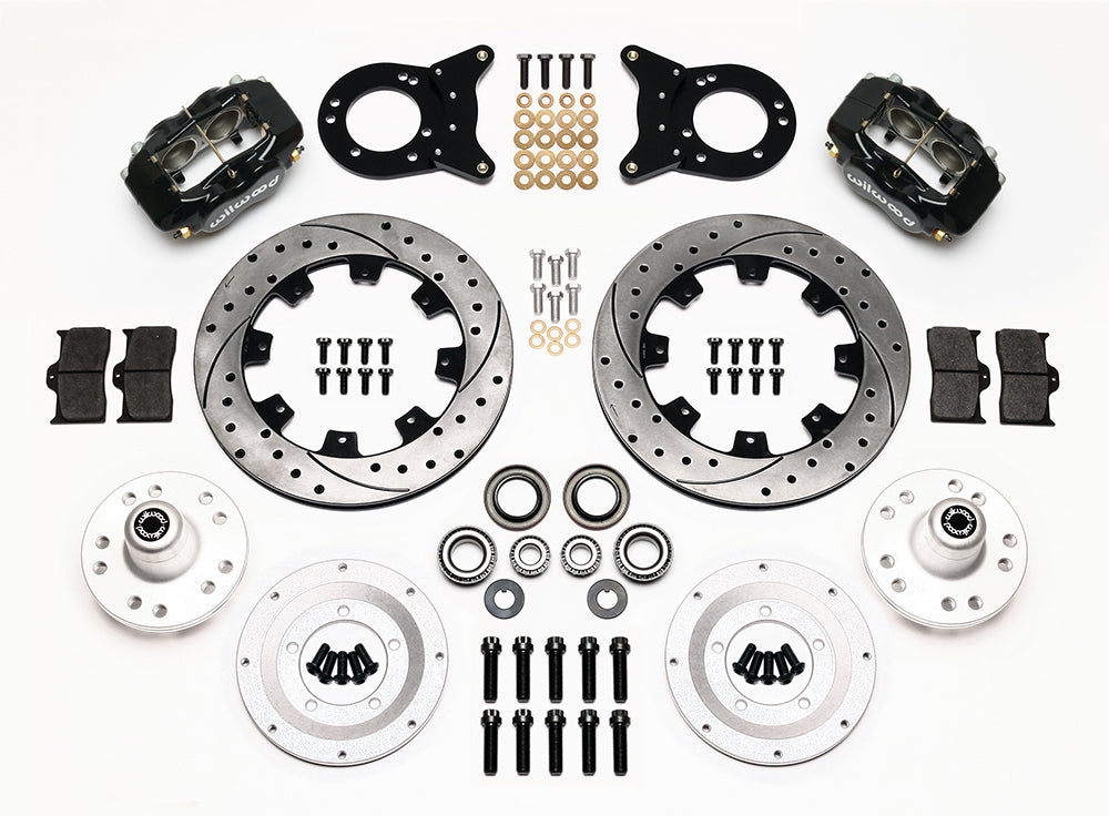 FDL Big Brake Front Hub Kits provide the added advantage of larger diameter brake rotors for traditional non-ABS spindles on American muscle cars and vintage rods. Forged billet Dynalite calipers, 12.19” diameter rotors, and high performance Wilwood brake pads generate big brake stopping power to compliment wheel, tire, and suspension upgrades on all types of custom show and performance street / strip machines. A full range of options for caliper finish and rotor design provide custom builders with the ability to personalize the style and performance requirements of the mildest to the wildest machines.