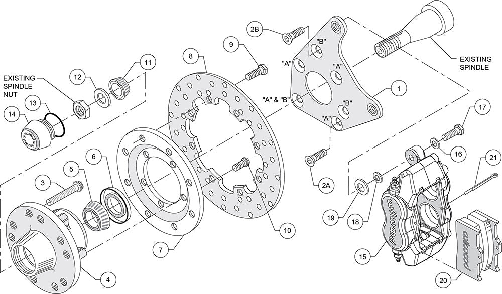 FDL Front Drag kits are drag racing's most popular front brake kits. FDL kits are available for the popular muscle car spindles and select aftermarket front struts used on four-wheel disc cars weighing up to 2,800 pounds, or rear drum brake equipped cars weighing up to 2,400 pounds. Forged billet FDL four piston calipers mount directly to the spindle with a bolt-on bracket. Forged billet, five lug hubs with direct mount steel rotors combine to provide an average weight savings of over 30 pounds compared to stock drum or disc brakes. Kits include all new hardware, wheel bearings, seals and extra length lug studs.