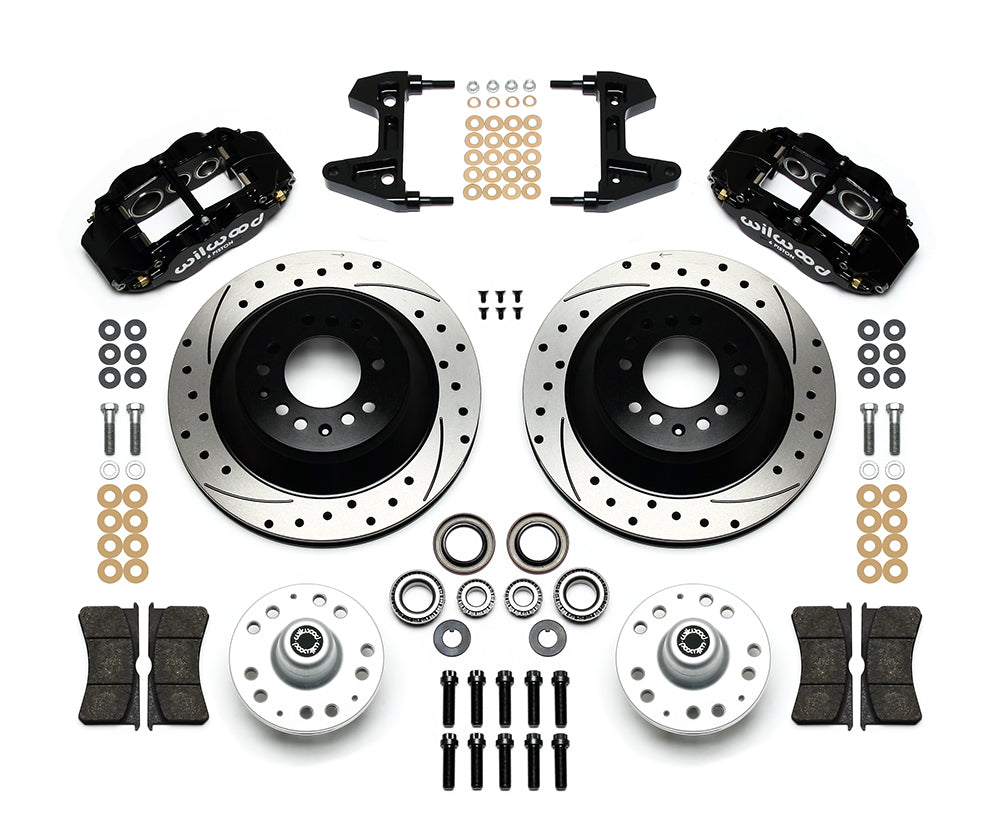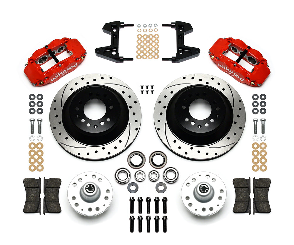 FNSL6R Billet Forged six-piston calipers with 12.88 in diameter, 1 piece rotor and hats kits deliver the cost effective combination for braking power and style in this group of kits engineered for traditional non-ABS spindles on American muscle cars and vintage rods. Built exclusively for 17” and larger wheels, FNSL6 kits enhance tire and suspension upgrades on all types of custom show and high performance dual-purpose street and track machines. A full range of options for caliper finishes and rotor designs are guaranteed to catch the eye of the most discriminating enthusiast while providing optimized brake performance for every individual application.