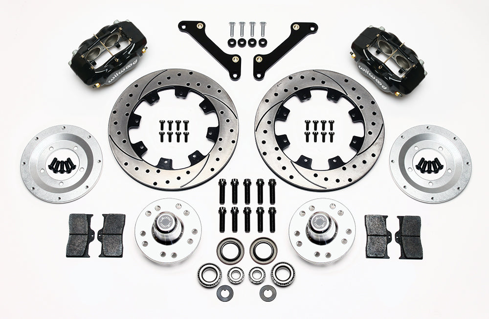FDL Big Brake Front Hub Kits provide the added advantage of larger diameter brake rotors for traditional non-ABS spindles on American muscle cars and vintage rods. Forged billet Dynalite calipers, 12.19” diameter rotors, and high performance Wilwood brake pads generate big brake stopping power to compliment wheel, tire, and suspension upgrades on all types of custom show and performance street / strip machines. A full range of options for caliper finish and rotor design provide custom builders with the ability to personalize the style and performance requirements of the mildest to the wildest machines.
