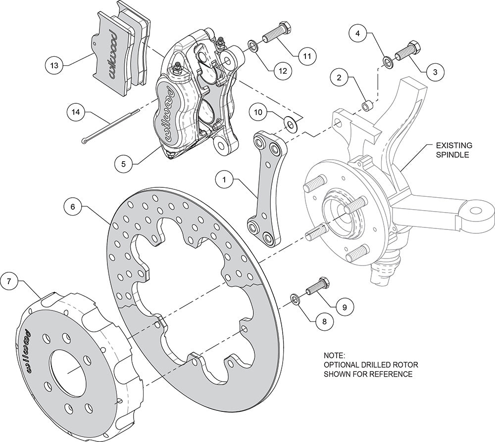FDL Front Drag Brake Kits with Hats are drag racing's most popular front brake kits. FDL kits are available for the popular Import car spindles or front struts used on four-wheel disc cars weighing up to 2,800 pounds, or rear drum brake equipped cars weighing up to 2,400 pounds. Forged billet FDL four piston calipers mount directly to the spindle with a bolt-on bracket. Forged Hats with direct mount steel rotors combine to provide an average weight savings of over 30 pounds compared to stock drum or disc brakes. Kits include attachment hardware, brake pads, and instructions.