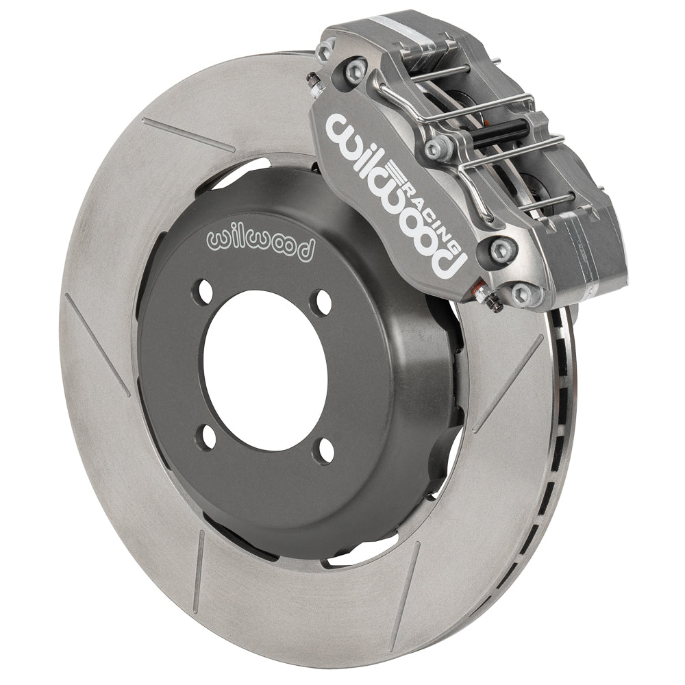 This kit is configured for dedicated road racing on the 1990-2005 model year Mazda MX-5 Miatas. It requires 15” wheels designed with additional inside clearance to accommodate the larger than stock brake package. The four piston FDL/ST calipers used in this kit feature a forged aluminum body with a Type III Mil-Spec hard anodized, medium gray color finish. Hard anodizing provides superior wear resistance in the piston bores, and high resistance to abrasion and corrosion throughout. Thermlock® pistons are used to reduce heat transfer from the pads to increase fade resistance, and to extend service life by decreasing temperatures in the caliper body, fluid, and seals. Internal damper springs and controlled retraction, high-temperature piston seals assure consistent pedal height from start to finish. Caliper piston volumes are sized for compatibility with OE power brake boosters and master cylinders, and are easily configured with manual brake conversions and balance bar pedals using appropriately sized master cylinders. Spec37 alloy, GT competition series 11.75” diameter 40 vane rotors are mounted to weight saving forged aluminum lug mount hats. Unsprung and rotating weight are minimized while providing high cooling efficiency and rugged durability with thermal stability in sustained high heat competition. Mounting brackets, including all premium grade fasteners, secure the calipers in the stock location, without modifications. This race winning system is completed with high temperature, high friction, endurance compound race pads selected specifically by application. Stainless steel braided flexlines are included in each kit to complete the installation.
