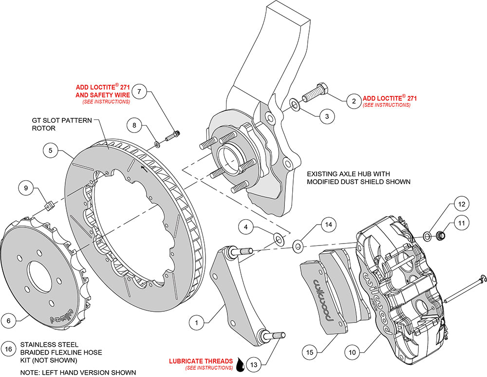 AERO6-ST six piston radial mount calipers are coupled with the high cooling capacity of 14.00” dynamically mounted GT directional vane rotors to provide the ultimate brake package for unrestricted road race competition. Thermlock pistons in the calipers resist fade and extend service life by reducing the heat transfer from the pads, caliper body, fluid, and seals. New design AERO6-ST (Thick Pad) calipers with 20mm thick pads increase endurance with longer pad life. Rotors mount to the hubs with forged aluminum hats and radial mount brackets secure the caliper to the spindle in the OE location without modification. Kits also include high temperature, high friction race compound pads and all premium grade fasteners.