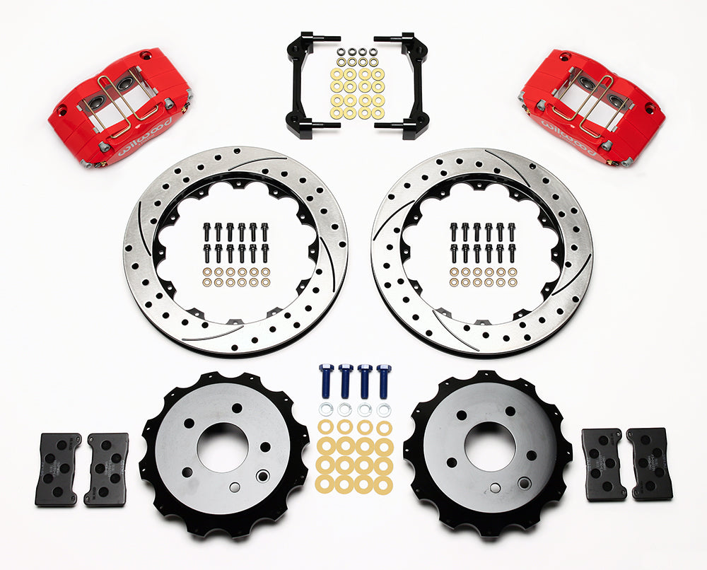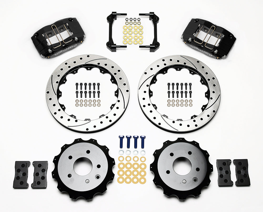 Forged billet DynaPro four piston calipers and high performance BP-10 compound pads generate high clamping power with firm pedal response for this group of specialized rear axle brake kits. These kits retain full function of the OE parking brake and provide complimentary performance and style with front big brake upgrades. Caliper piston sizes are selected to provide balanced rear bias ratios using the output from the OE master cylinder. Rear rotor and hat combinations are engineered specific to each vehicle to provide brake performance upgrades and precise fit with the mounting of the DynaPro calipers.