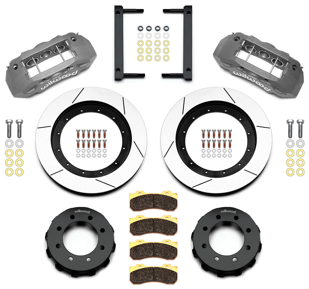 Wilwood's Tactical Extreme TX6R Big Brake kits are ultimate in braking performance for Truck, SUV and Armored Vehicles. Using TX6R radial mount six-piston calipers and massive 15.00” to 16.00” GT-60 directional vane Spec-37 alloy rotors, these kits deliver consistent stopping power and extreme duty durability under sustained high heat with this ready to bolt-on kit. The calipers are volume matched for compatibility with original equipment power brake system output. Kits include radial mount caliper brackets, and all the necessary hardware to complete the installation. Braided stainless steel flex lines will need to be purchased for some applications.