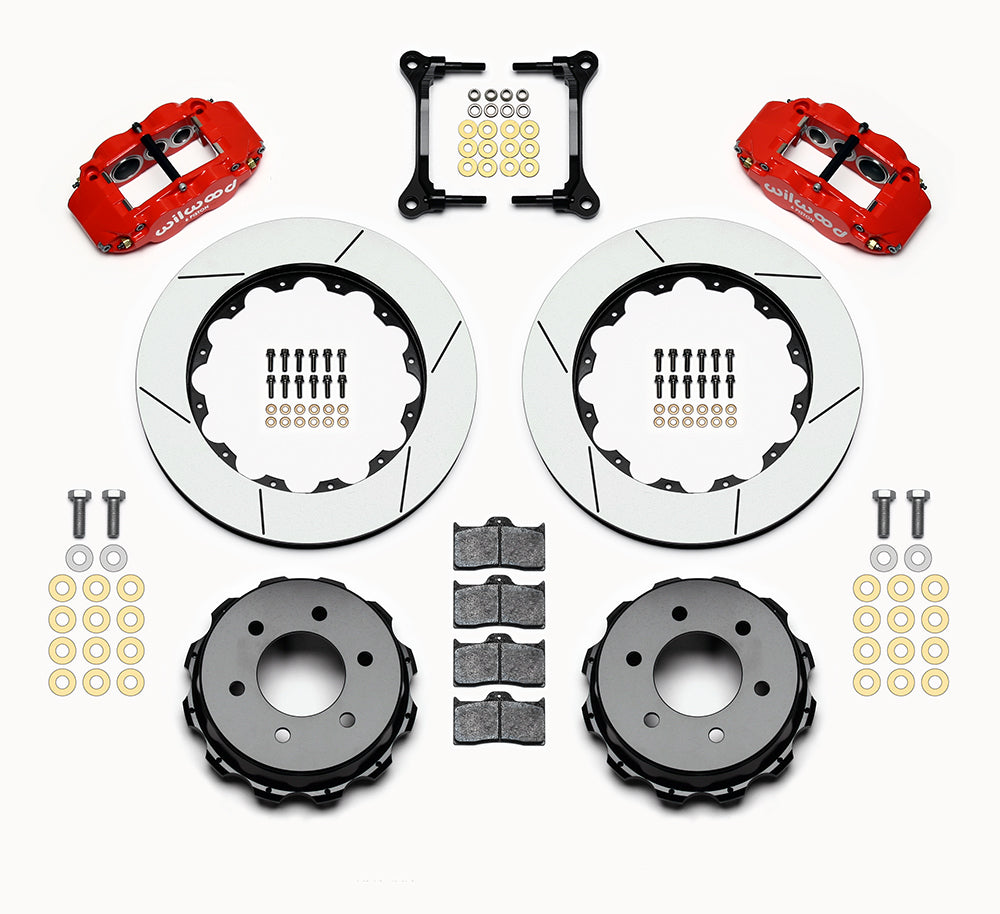 Forged Narrow Superlite 6R four piston calipers are combined with BP-10 compound pads and 14.25” rotors in this group of big brake kits for Trucks. This group of specialized kits retain full use of the OE parking brake, master cylinder output, and ABS where used. FNSL6R rear kits provide complimentary style and performance with 14.25” and larger front brake upgrades in conjunction with wheel, tire, and suspension upgrades. Optional caliper finishes and rotor designs enable the builder to match style and performance on all applications.