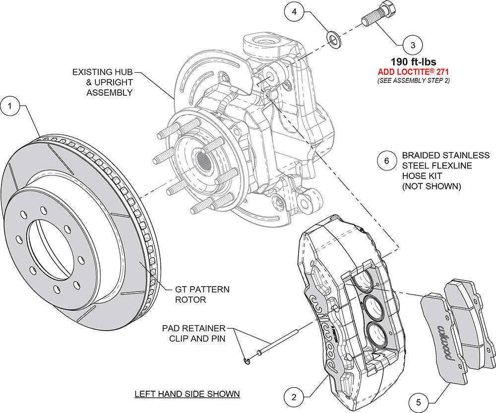 Wilwood's Tactical Extreme TX6-DM Big Brake kits are ultimate in braking performance for Truck, SUV and Armored Vehicles. Using TX6-DM direct mount six-piston calipers and massive 15.00” GT slotted alloy rotors, these kits deliver consistent stopping power and extreme duty durability under sustained high heat with this ready to bolt-on kit. The calipers are volume matched for compatibility with original equipment power brake system output. Kits include all the necessary hardware to complete the installation. Braided stainless steel flex lines may need to be purchased for some applications if not included in kit.