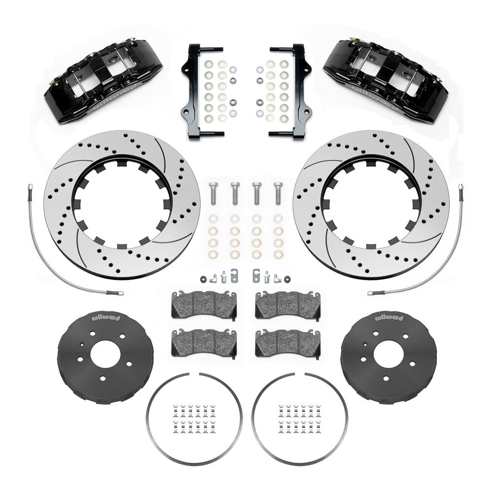 SX6R calipers were designed for the specific purpose of providing high capacity braking with large diameter rotors for extreme duty and race vehicles. It is the largest dual purpose caliper Wilwood has produced, providing big brake performance for show and dual purpose street and track vehicles. Offering additional enhanced braking with wheel and tire upgrades. Kits are fully compatible with OE master cylinder output and ABS function. Directional 72 staggered vane 14.00” to 15.00”rotors provide maximum cooling for sustained high heat durability.