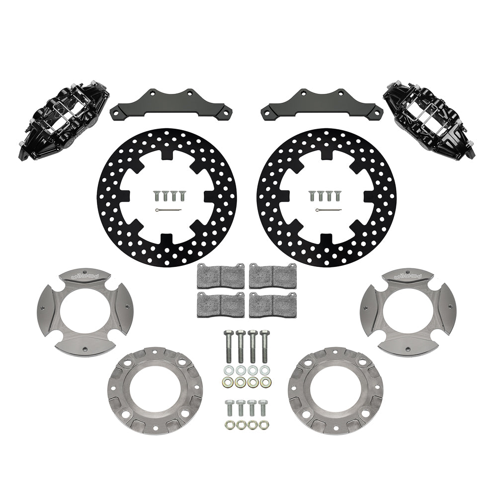 Wilwood's matched front and rear UTV brake kits feature dynamically-mounted rotors and upgraded calipers for popular side-by-side machines. Kits combine fixed mount multi-piston calipers with greater clamping force, and larger diameter floating rotors for more brake torque, improving braking on higher-powered UTVs. Forged aluminum differential-bore four and six piston calipers reduce deflection and provide more uniform engagement to increase braking force and improve feel. High-friction steel rotors, are up to 20% greater in diameter and thicker for less distortion. Dynamically mounted rotors reduce thermal stress and prevent piston knockback from rough terrain.