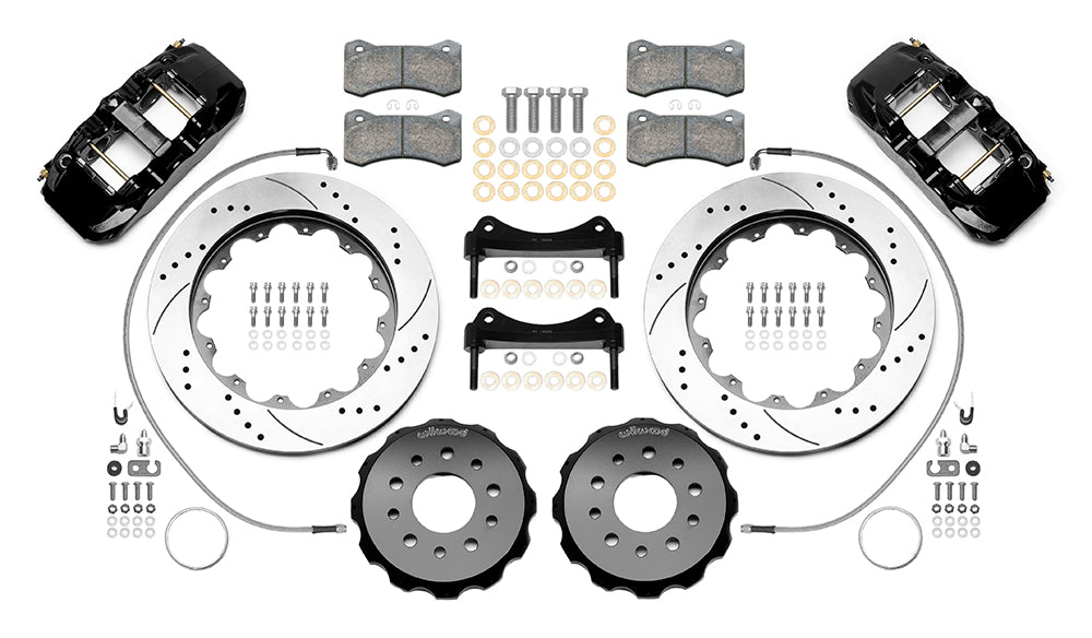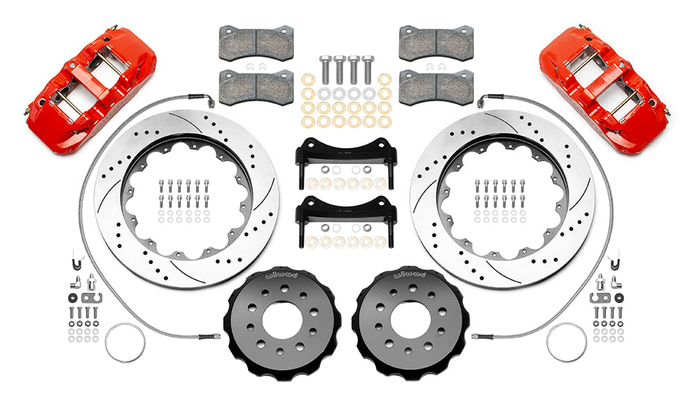 Wilwood's 140-15892 Aero6 Big Brake front kit is designed specifically for 2018-up Jeep Wrangler JL series. This big brake kit combines 14.00” two-piece GT slotted rotors or SRP drilled and slotted with lightweight aluminum hats, Aero6 six piston calipers, and BP-10 or BP-20 Smart Pads. AERO6 calipers were designed for the specific purpose of providing big capacity braking with large diameter rotors for heavy weight and extreme duty vehicles. It's the biggest of the big, providing big brake performance for show and dual purpose street and track vehicles. It provides big stopping power for enhanced braking with wheel and tire upgrades. Kits listed for specific vehicles are fully compatible with OE master cylinder output and ABS function. Directional staggered vane 14.00” to rotors provide maximum cooling for sustained high heat durability.