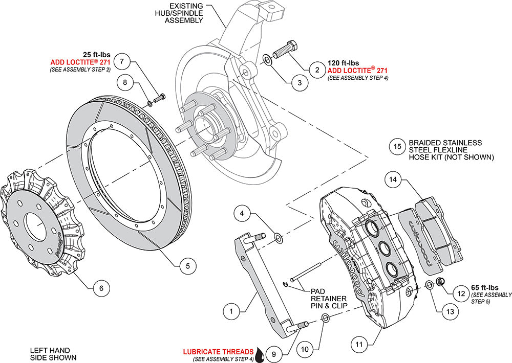Wilwood's Tactical Extreme TX6R Big Brake kits are ultimate in braking performance for Truck, SUV and Armored Vehicles. Using TX6R radial mount six-piston calipers and massive 15.00” to 16.00” GT-60 directional vane Spec-37 alloy rotors, these kits deliver consistent stopping power and extreme duty durability under sustained high heat with this ready to bolt-on kit. The calipers are volume matched for compatibility with original equipment power brake system output. Kits include radial mount caliper brackets, and all the necessary hardware to complete the installation. Braided stainless steel flex lines will need to be purchased for some applications.
