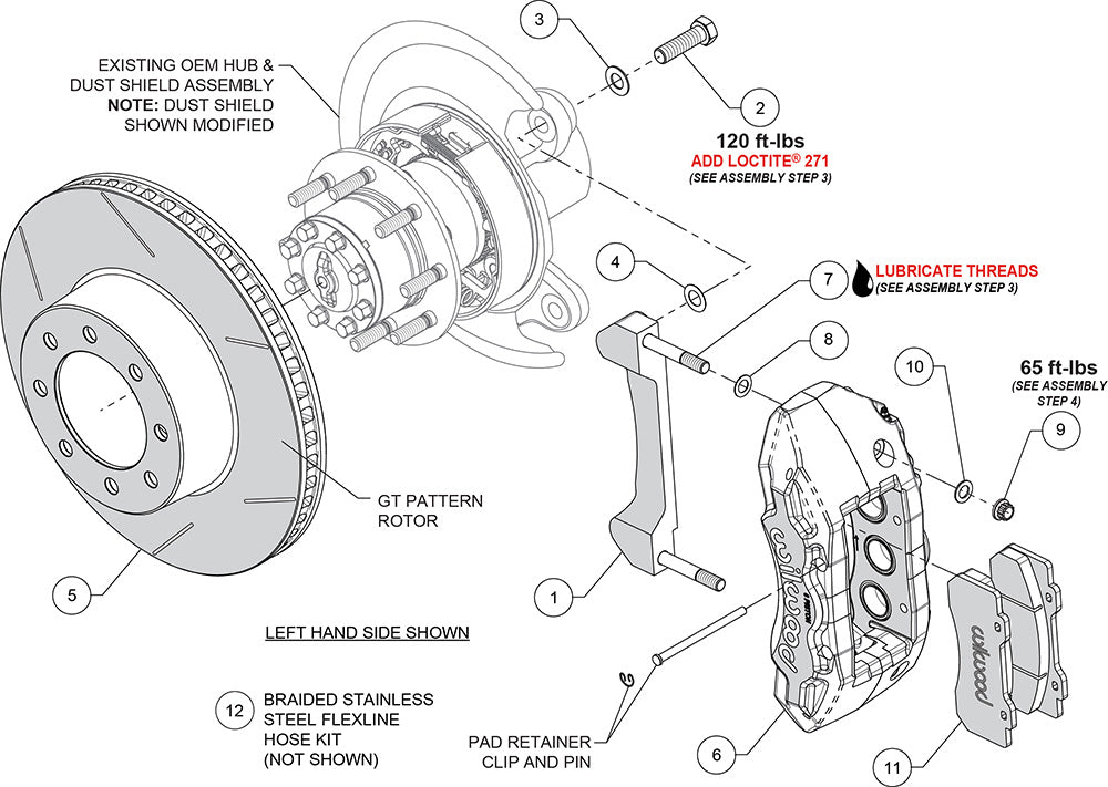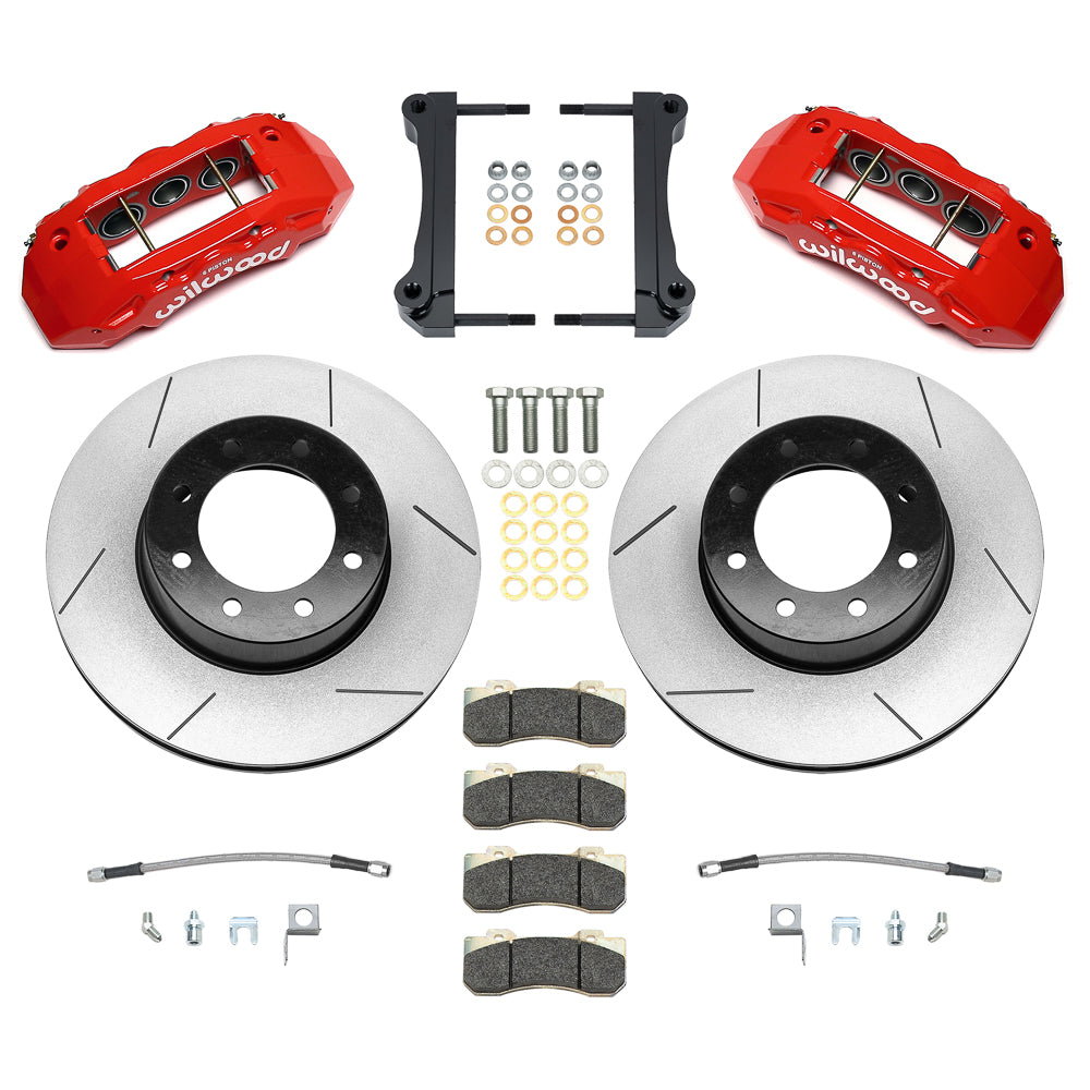 Wilwood's Tactical Extreme TX6R Big Brake rear kits are ultimate in braking performance for Truck, SUV and Armored Vehicles. Using TX6R radial mount six-piston calipers and massive 15.00” to 16.00” GT-60 directional vane Spec-37 alloy rotors, these kits deliver consistent stopping power and extreme duty durability under sustained high heat with this ready to bolt-on kit. The calipers are volume matched for compatibility with original equipment power brake system output. TX6R rear kits replace the factory disc brakes and use the OE parking brake assembly as a compliment to front big brake upgrades. Kits include radial mount caliper brackets, and all the necessary hardware to complete the installation. Braided stainless steel flex lines will need to be purchased for some applications.