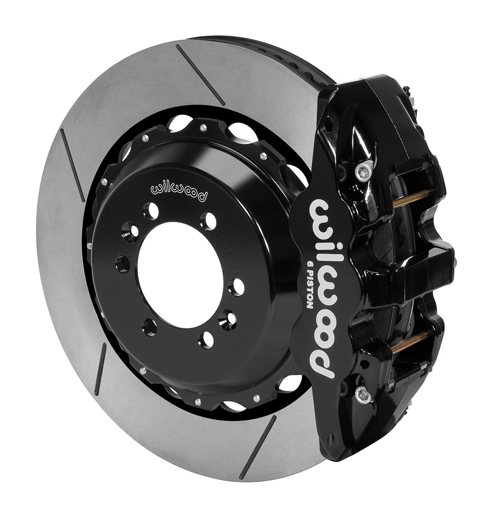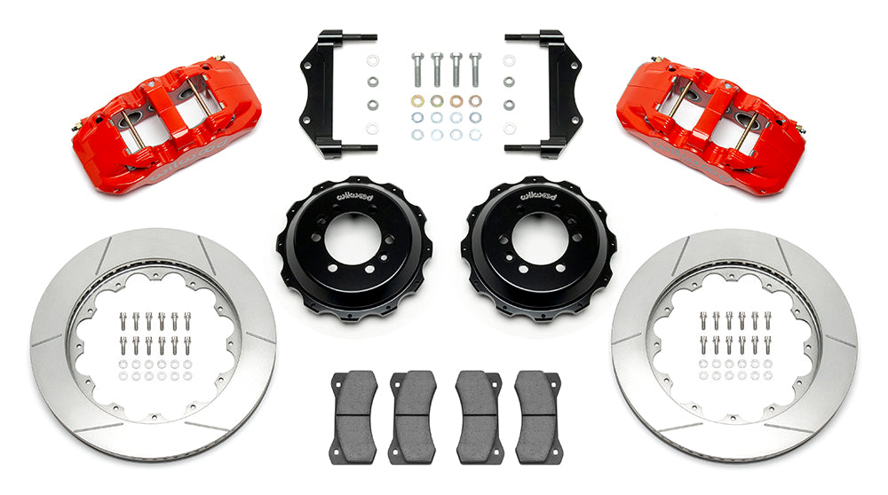 AERO4 Big Brake Rear Axle Kits replace the factory disc brakes and use the OE parking brake assembly as a compliment to front big brake upgrades on late model high performance vehicles. High capacity braking from the W4AR calipers, BP-10 or 20 compound pads, and oversized 14.00 in rotors are matched to the OE master cylinder output, ABS function, and individual vehicle bias requirements. Enhanced brake performance, increased durability, and high-tech style compliment big wheel, tire, and suspension upgrades on customized vehicles and all others with increased brake requirements.
