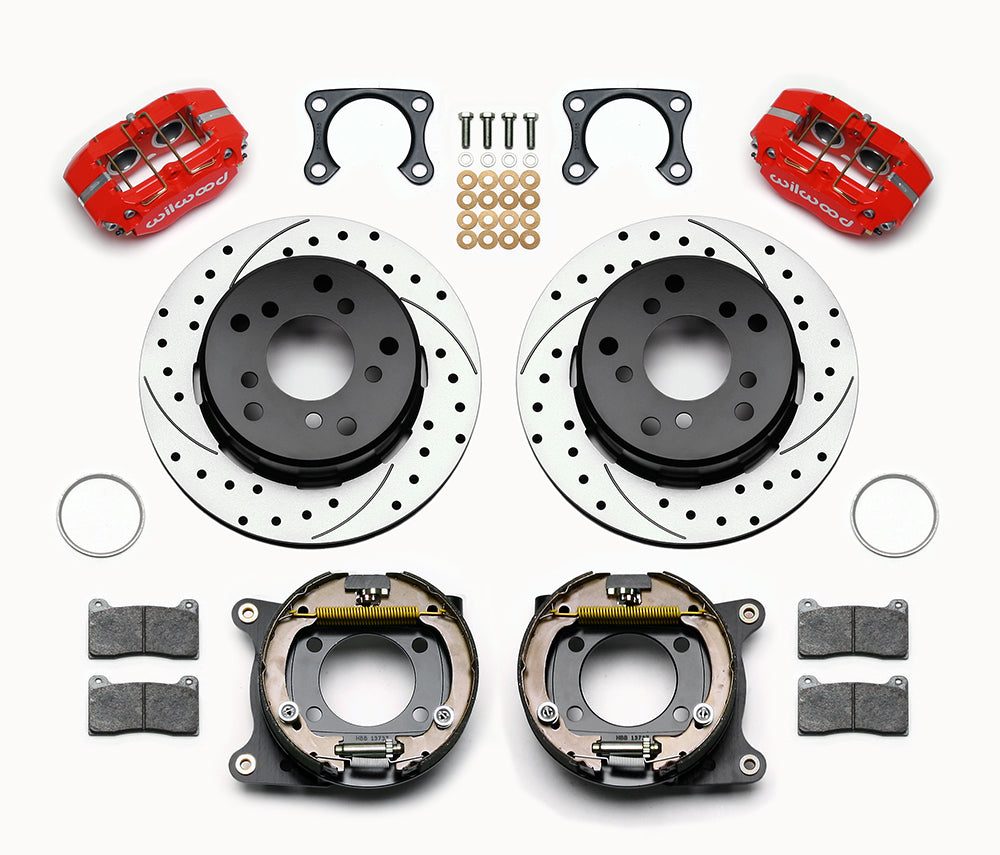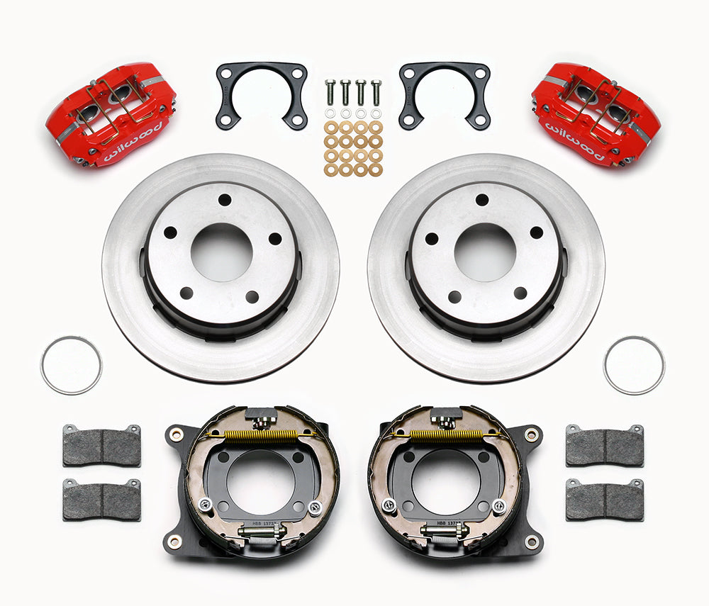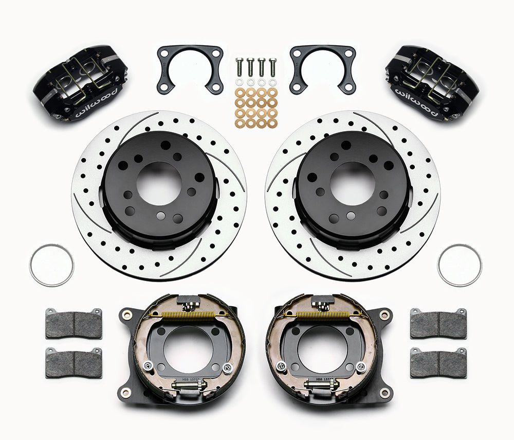 These versions of DPL Pro-Series rear disc kits provides a complete solution for Bronco 65-77 rear axles with Big Ford flange and bearing, with a 2.00 in axle offset. Forged Billet Dynapro Lug Mount four piston calipers, 12.19” one-piece drum/rotors, and high friction pads provide optimized and balanced braking to compliment front big brake upgrades available for Bronco platform. The neatly hidden internal shoe system provides a clean installation with superior static holding power for parking. Optional caliper finishes and rotor designs enable the builder to personalize the style and optimize brake performance for every individual application.