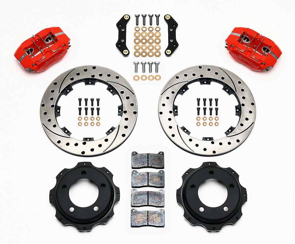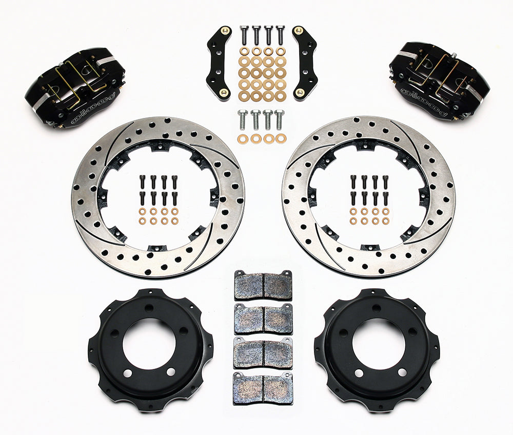 Forged billet DynaPro four piston calipers and high performance BP-10 compound pads generate high clamping power with firm pedal response for this group of specialized rear axle brake kits. These kits retain full function of the OE parking brake and provide complimentary performance and style with front big brake upgrades. Caliper piston sizes are selected to provide balanced rear bias ratios using the output from the OE master cylinder. Rear rotor and hat combinations are engineered specific to each vehicle to provide brake performance upgrades and precise fit with the mounting of the DynaPro calipers.
