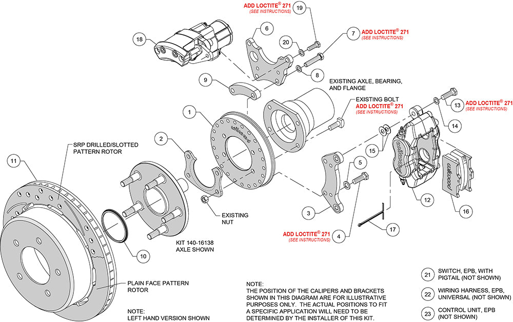 These FDL Pro-Series Rear EPB (Electric Parking Brake) Kits provide an innovative parking brake solution for popular car and truck rear axles. Forged billet aluminum Dynalite four piston calipers, 12.19” one-piece rotors, and high-friction pads provide balanced front/rear brake bias for all types of high-performance street machines. The unique EPB caliper provides secure parking with high-torque holding power, but simplifies installation with no mechanical cable connection needed. Comes complete with switch, indicator, control unit and harness assembly.
