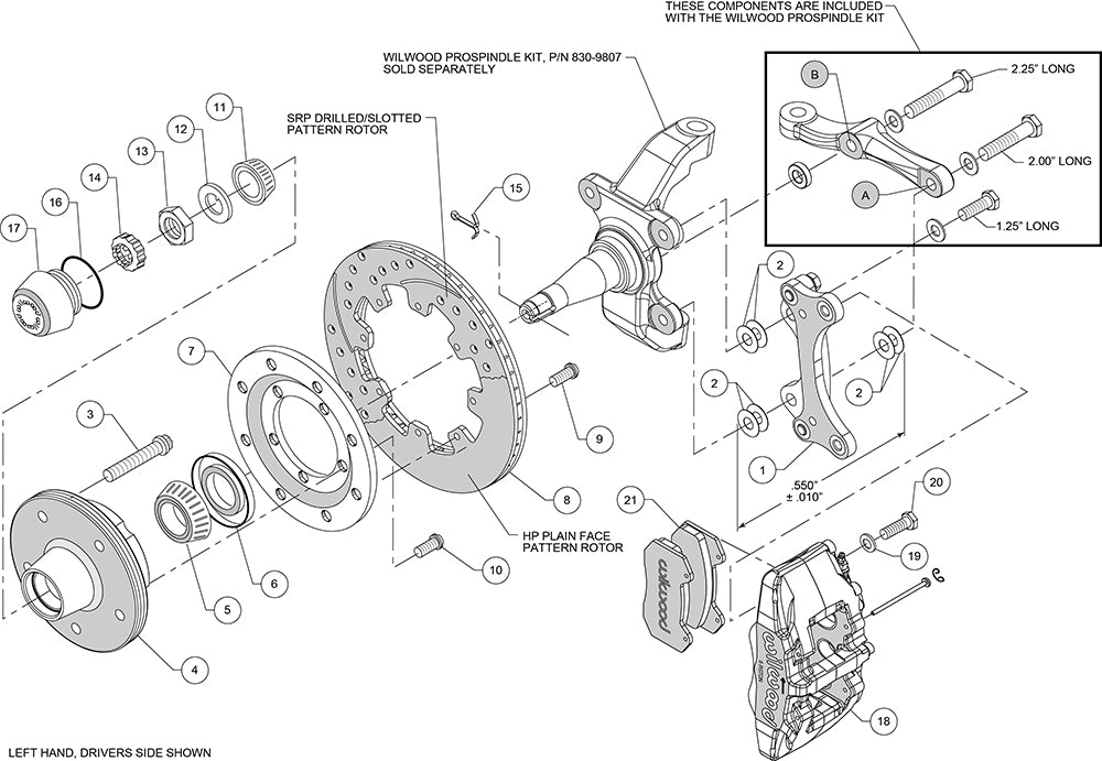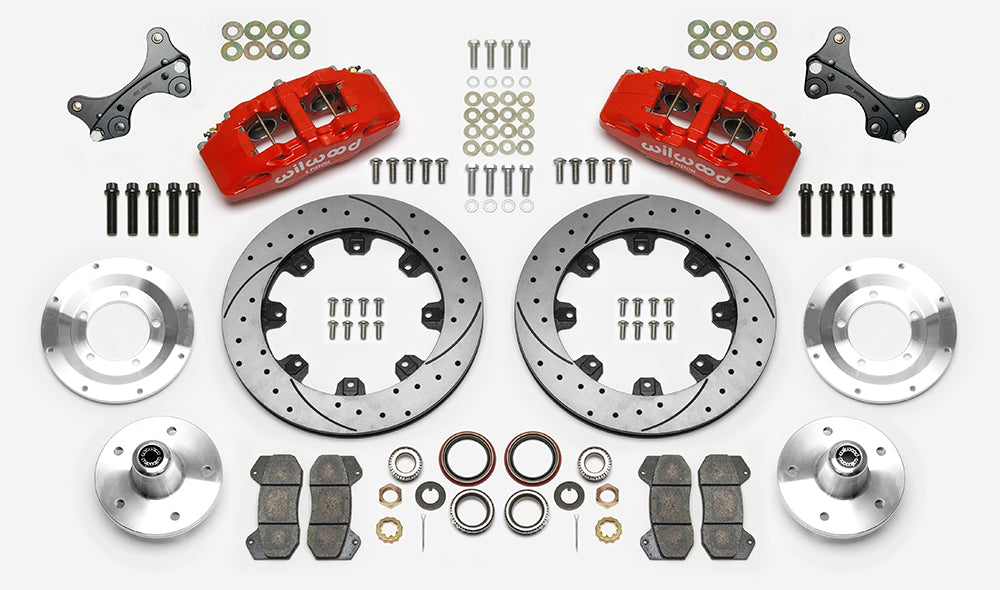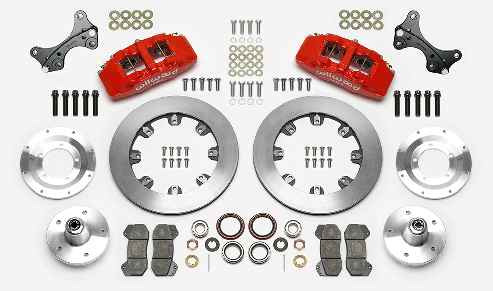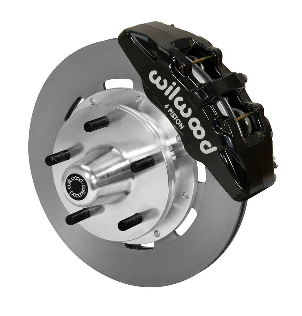 DynaPro 6 forged billet calipers are combined with 12.19” diameter rotors for this group of traditional non-ABS spindles on American muscle cars and vintage rods. The enhanced brake capacity and pad performance of the six piston calipers provide an intermediate level alternative to the bigger six piston kits. These kits are specially designed for 5 x 5.00 in bolt circle wheels. DynaPro 6 kits compliment wheel, tire, and suspension upgrades on all types of custom show and high performance street / strip machines. A full range of caliper finishes and rotor designs enable the builder to personalize the style and optimize the brake performance for each individual application.