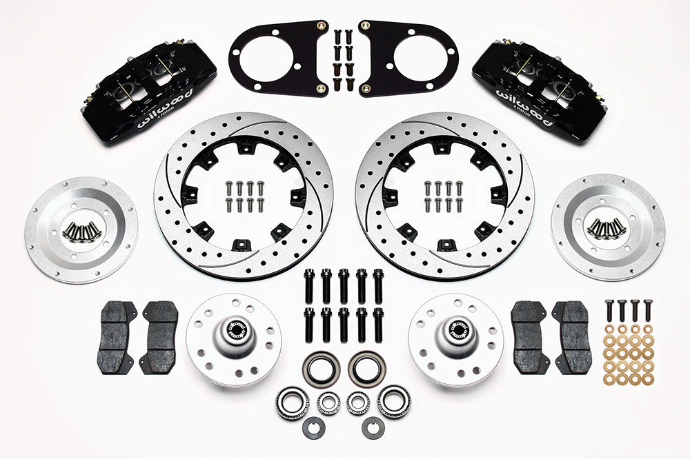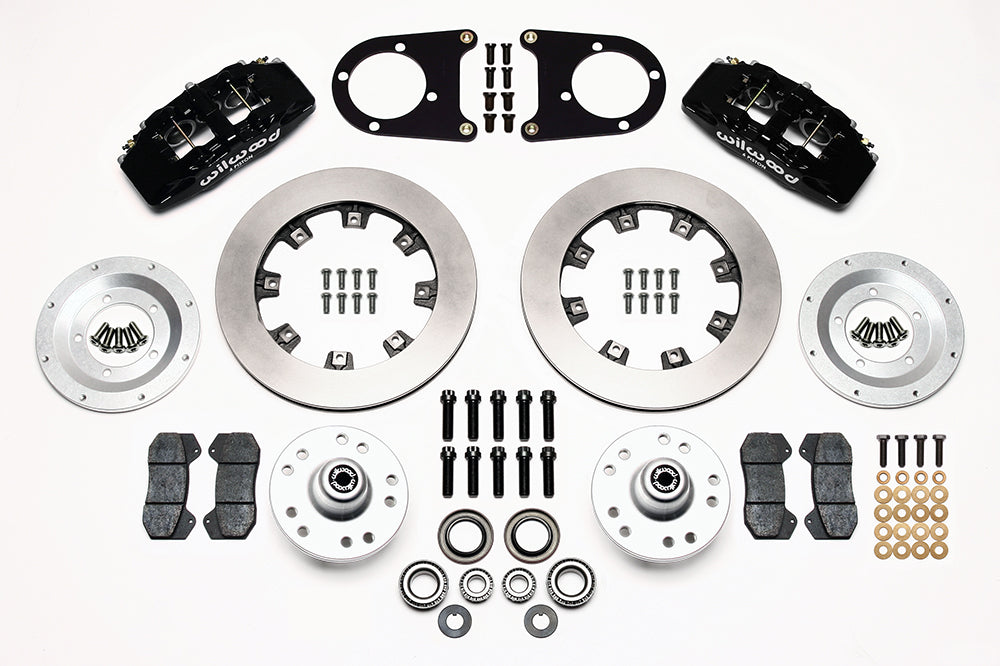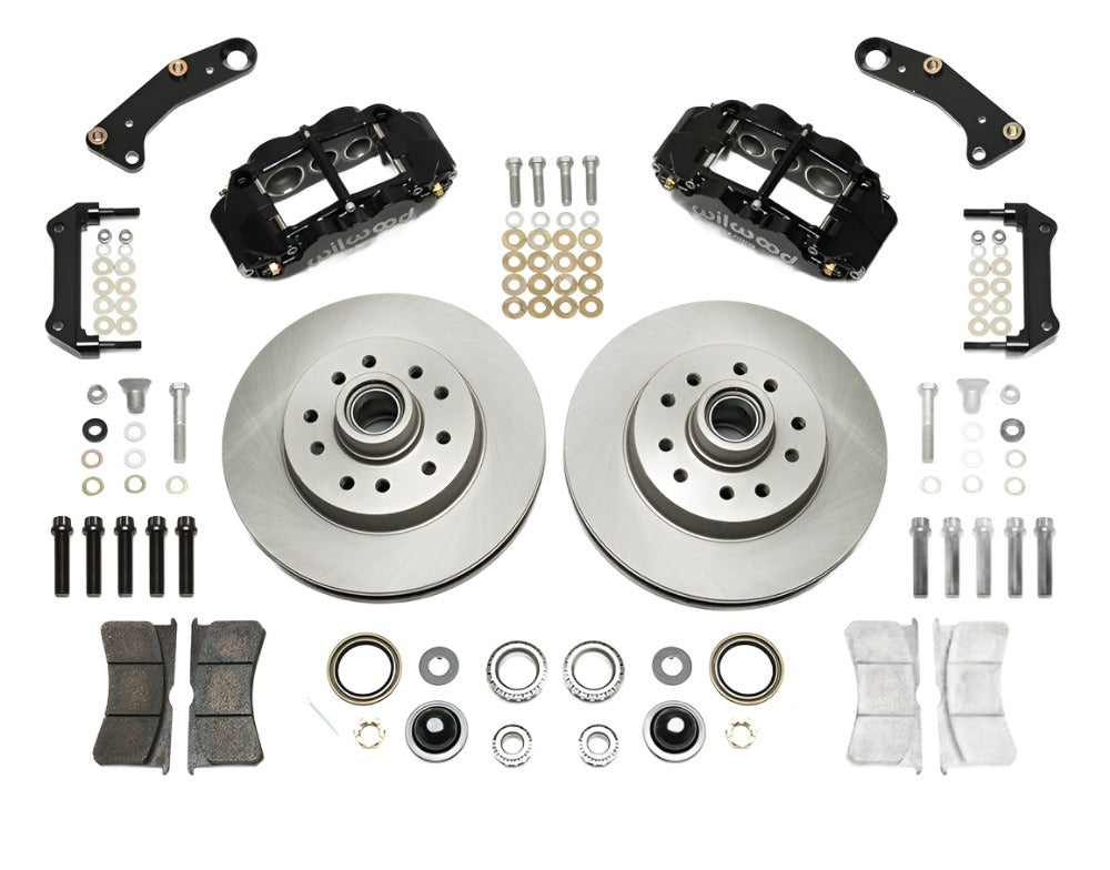 DynaPro 6 forged billet calipers are combined with 12.19” diameter rotors for this group of traditional non-ABS spindles on American muscle cars and vintage rods. The enhanced brake capacity and pad performance of the six piston calipers provide an intermediate level alternative to the bigger six piston kits. These kits compliment wheel, tire, and suspension upgrades on all types of custom show and high performance street / strip machines. A full range of caliper finishes and rotor designs enable the builder to personalize the style and optimize the brake performance for each individual application.