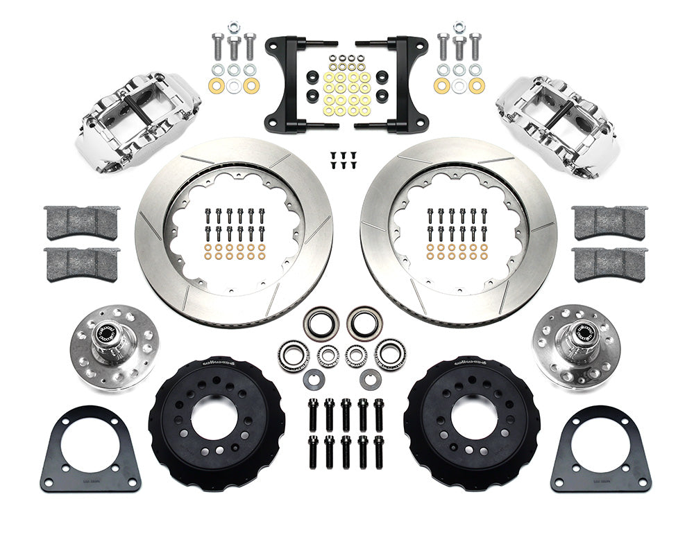 FNSL6R billet Forged six-piston calipers with 13”-14” rotors deliver the ultimate combination for braking power and style in this group of kits engineered for traditional non-ABS spindles on American muscle cars and vintage rods. Built exclusively for 17” and larger wheels, SL6 kits enhance tire and suspension upgrades on all types of custom show and high performance dual-purpose street and track machines. A full range of options for caliper finishes and rotor designs are guaranteed to catch the eye of the most discriminating enthusiast while providing optimized brake performance for every individual application.