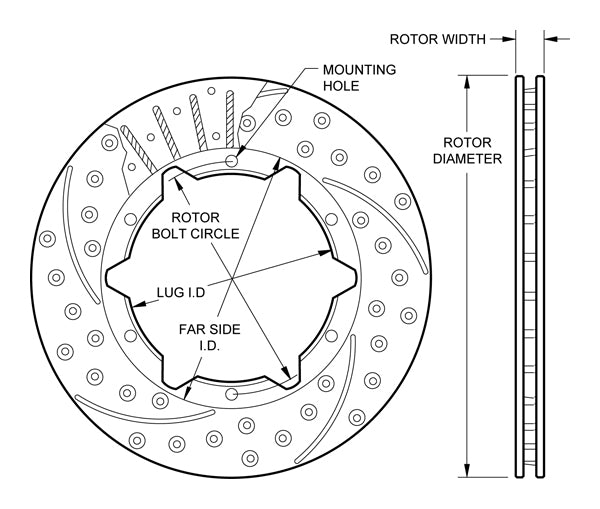 SRP rotors are available in all popular sizes used in Wilwood's Pro Series and Big Brake conversion kits. Kits in these categories designated with the drilled rotor option get the SRP as standard equipment.